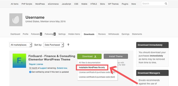 Download the theme files from ThemeForest > Downloads tab: