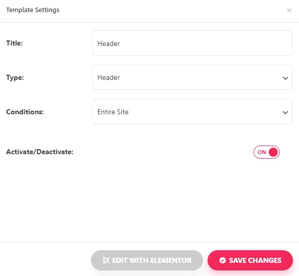 Open the Header template and click the Edit with Elementor button to start customizing.