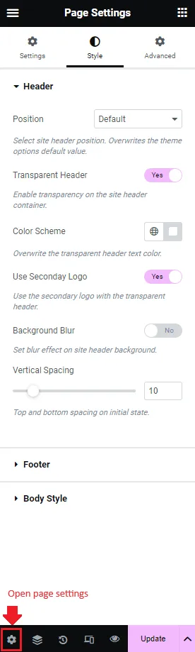 - Transparent Header: Toggle the transparent header effect on/off.