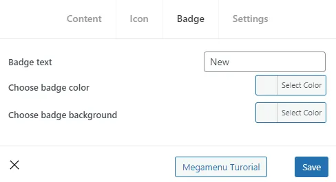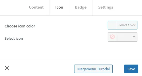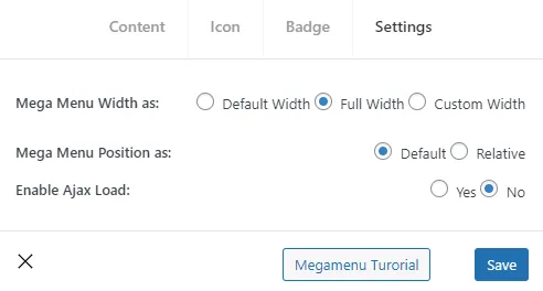 Select a menu item and click the mega menu settings icon to open the settings modal.