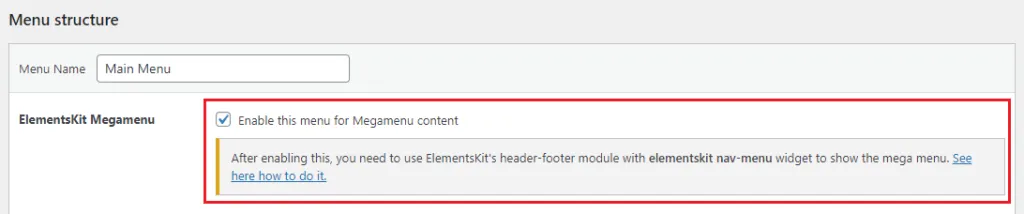 Remember to check the checkbox “Enable this menu for Megamenu content”. When enabled, you’ll see the mega menu settings icon when hovering over the menu items.