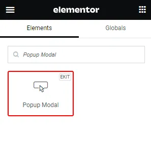 2. In the left side panel, search for the Popup Modal widget.